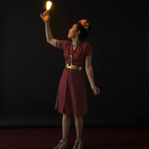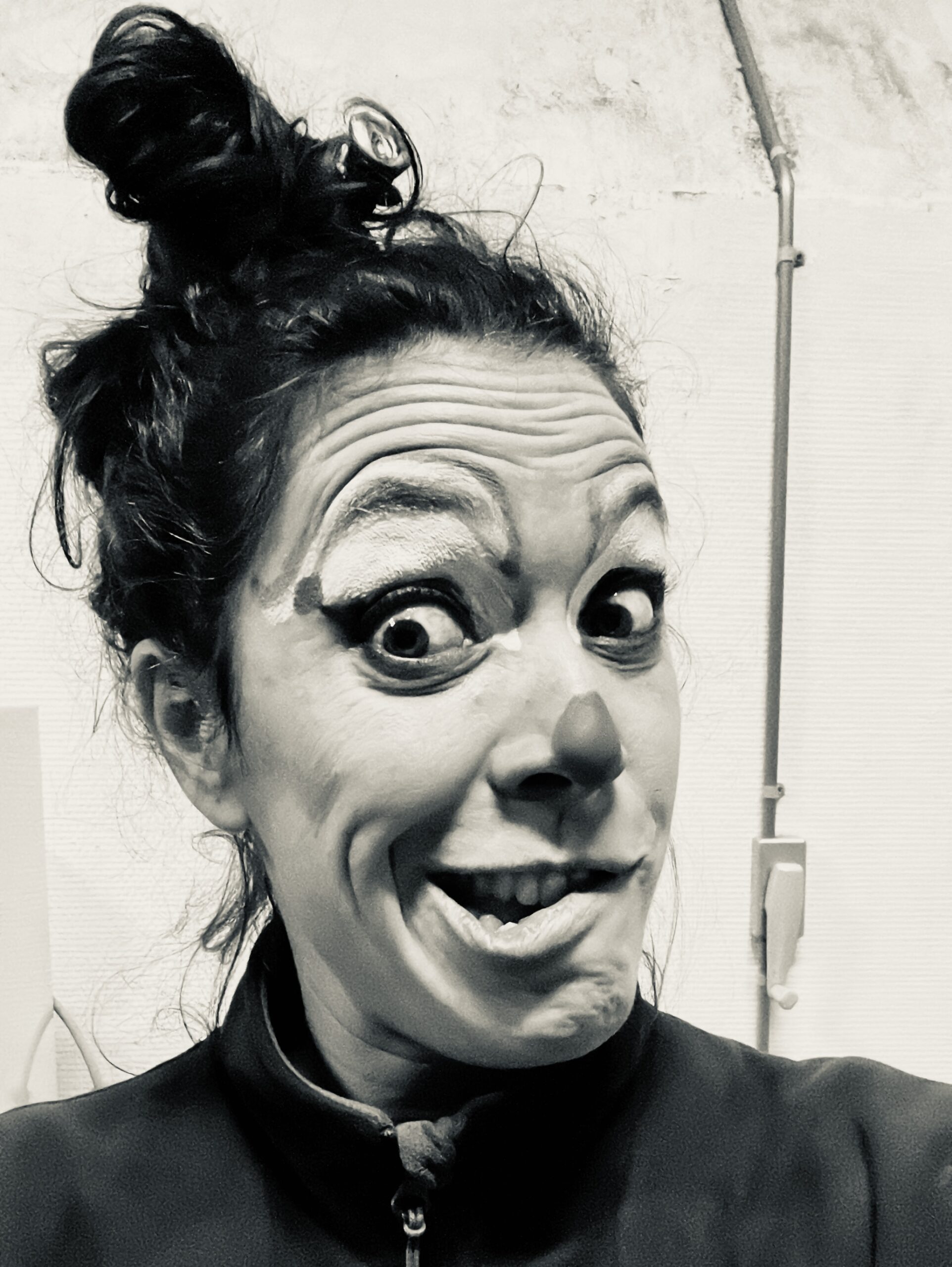 Clowne, Conférencière décalée, acrobate du rire et spécialiste des fausses notes à l’accordéon…